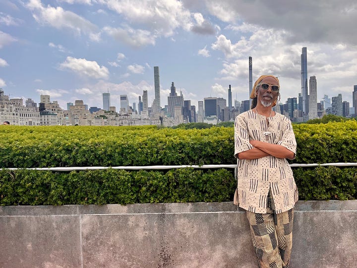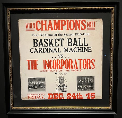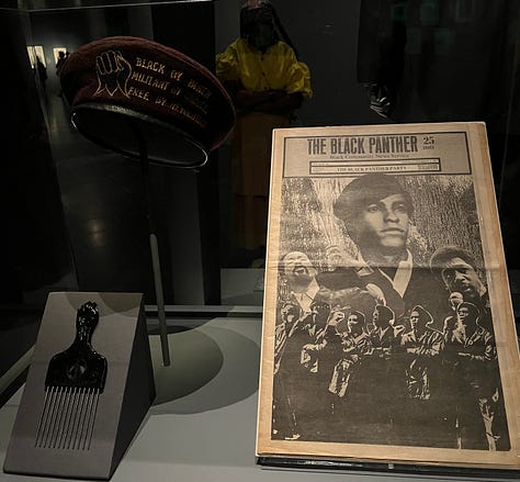 When I got eyes on Superfine a few days later, I realized that whatever the exhibition lacked in space, it made up for in objects. In addition to clothes, the curators Andrew Bolton and Monica L. Miller packed the galleries with portraits of 19th century entrepreneurs, the 1794 edition of Benjamin Banneker’s almanac, a display of early tailoring tools, a copy of a Black Panther newspaper alongside an Afro pick and Panther beret, video of the Nicholas brothers dancing, the A Great Day in Harlem photo, the A Great Day in Hip Hop photo, a 1915 advertisement for a basketball game, a perfect Barkley Hendricks painting, and several other things.